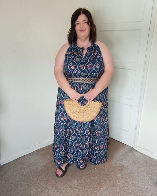 Stretchy Waistband Tie Wrap Neckline Maxi Dress