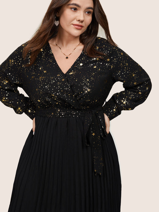 Bandana Print Surplice Neck Pocket Shirred Puff Sleeve Dress