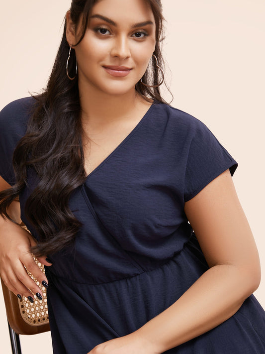Colorblock Contrast Pocket Wrap Flutter Tiered Tank Dress