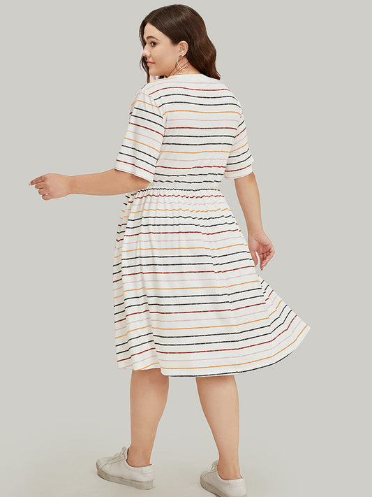 Rainbow Striped V Neck Pocket Contrast Midi Dress