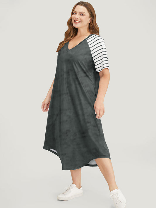 Striped Raglan Sleeve Pocket Arc Hem Dress
