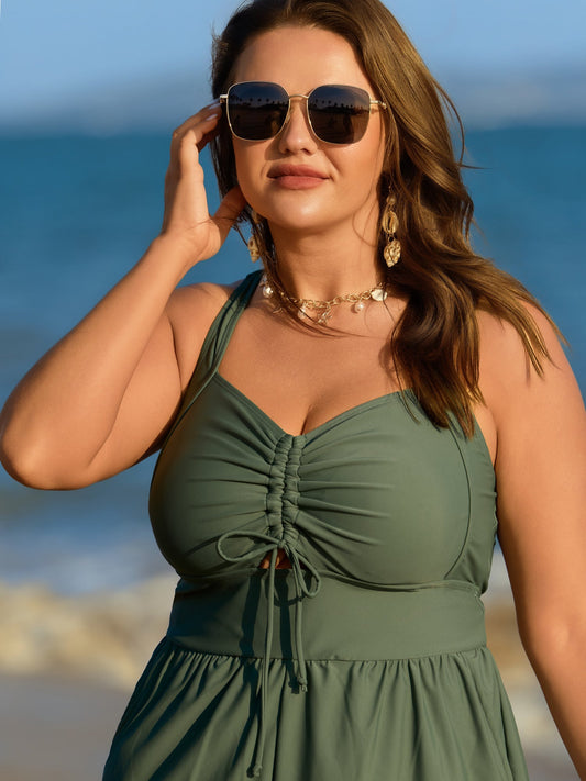 Cut-Out Drawstring Pockets Swim Romper