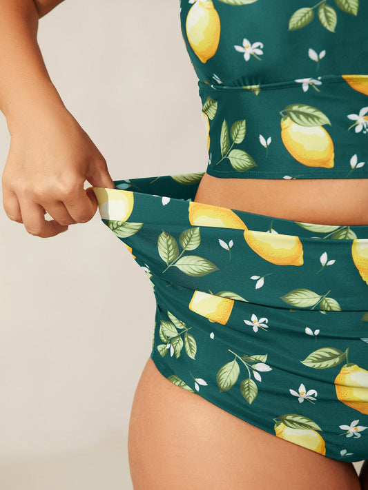 Lemon Print Pleated Tight-Fit Swim Bottoms